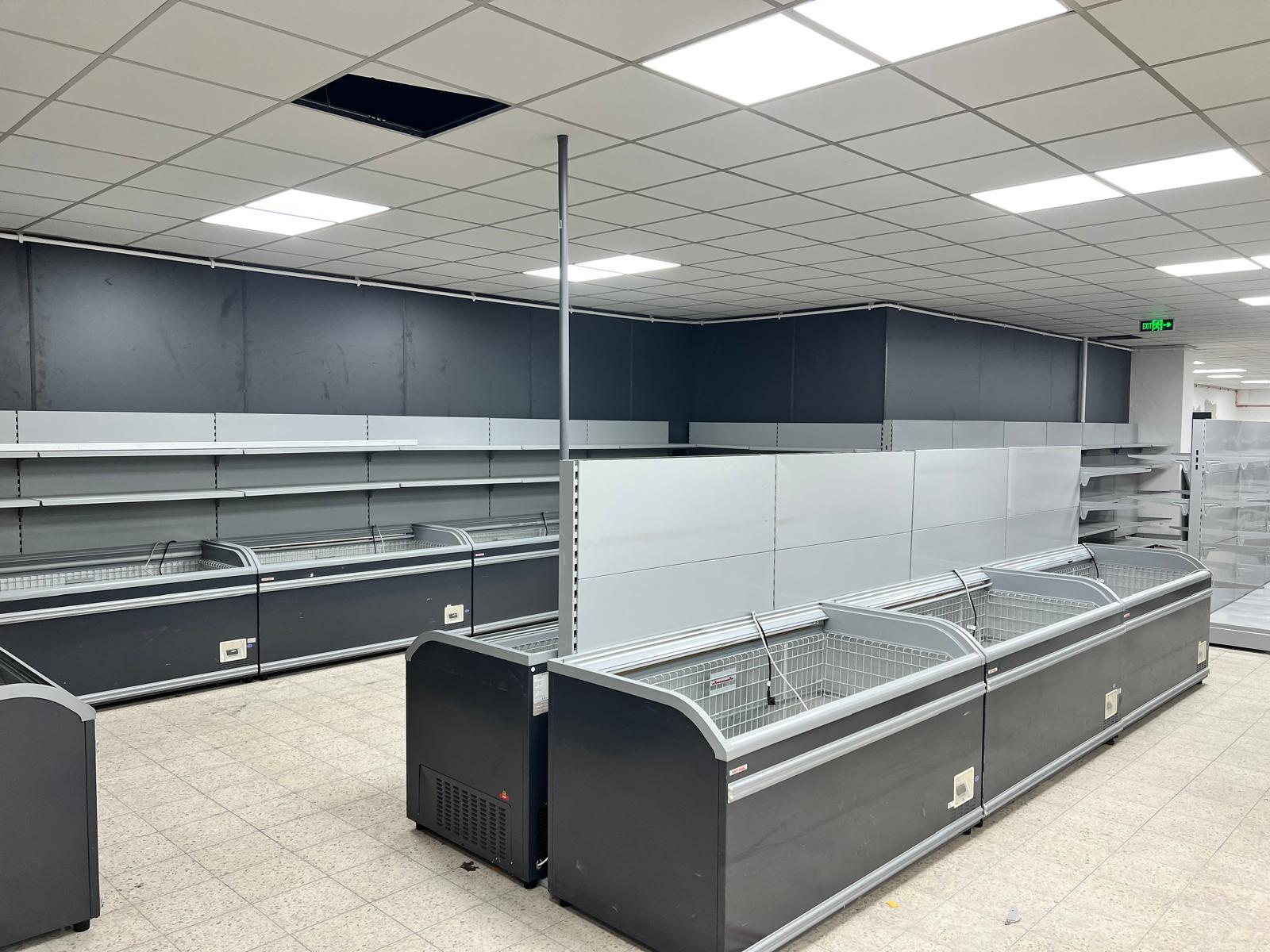 Markteinrichtung, Schlüsselfertige Regalsysteme und Kühlräume (für Fleisch, Trockenwaren, Obst und Gemüse)